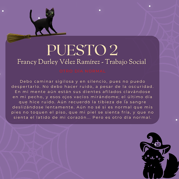 En octubre de 2024 celebramos la cuarta edición del concurso microrrelatos de terror, el cual conto con una gran participación y entusiasmo de parte de la comunidad educativa del Tecnológico de Antioquia. A continuación podrás observar los microrrelatos de los ganadores, además de los microrrelatos de todos los participantes